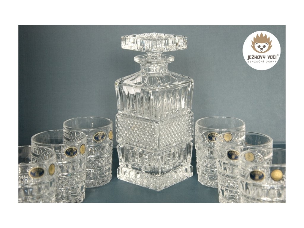 LUXUSNÍ WHISKY SET 1+6 Z OLOVNATÉHO KŘIŠŤÁLU CRYSTAL BOHEMIA - BRITTANY - olovnatý křišťál s nadčasovou elegancí