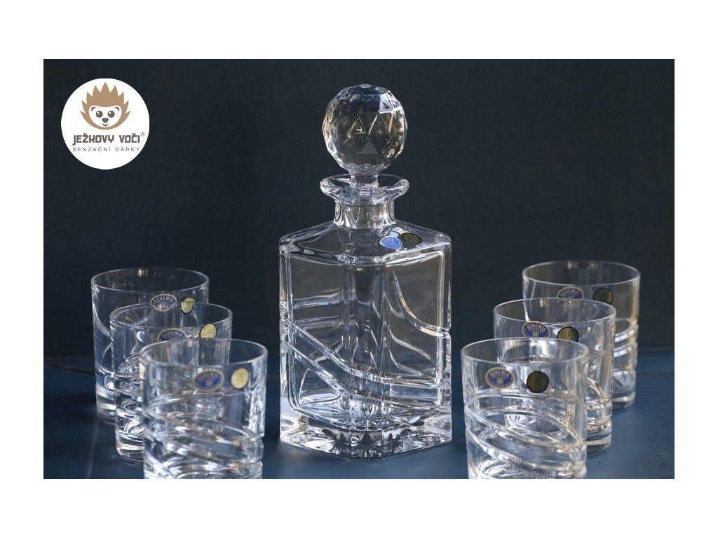 WHISKY SET 1+6 Z OLOVNATÉHO KŘIŠŤÁLU CRYSTAL BOHEMIA vyrobený z olovnatého křišťálu je proto nejen esteticky působivý, ale i exkluzivní dekorací, která pod světlem vynikne svou krásou a elegancí.